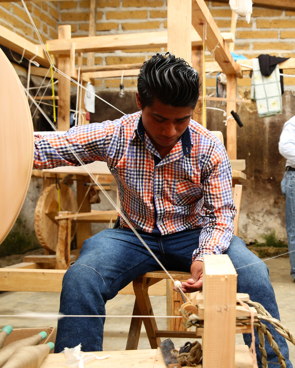 Nearby, we’ve partnered with another family-led workshop specializing in the same weaving style. They have nearly 20 operating looms and weave many of our popular Meridian napkins.