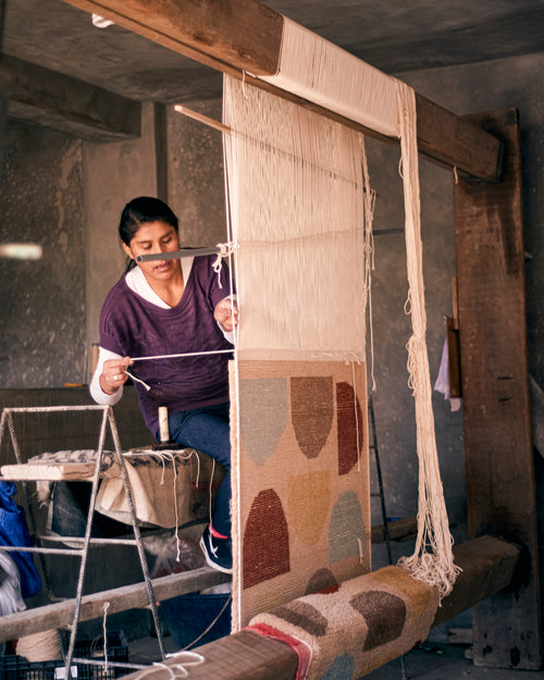 In Arequipa, also known as the White City for the white stone buildings that surround it, we partner with a small women-led workshop to create our pile rugs. The rugs are hand-knotted on vertical looms.