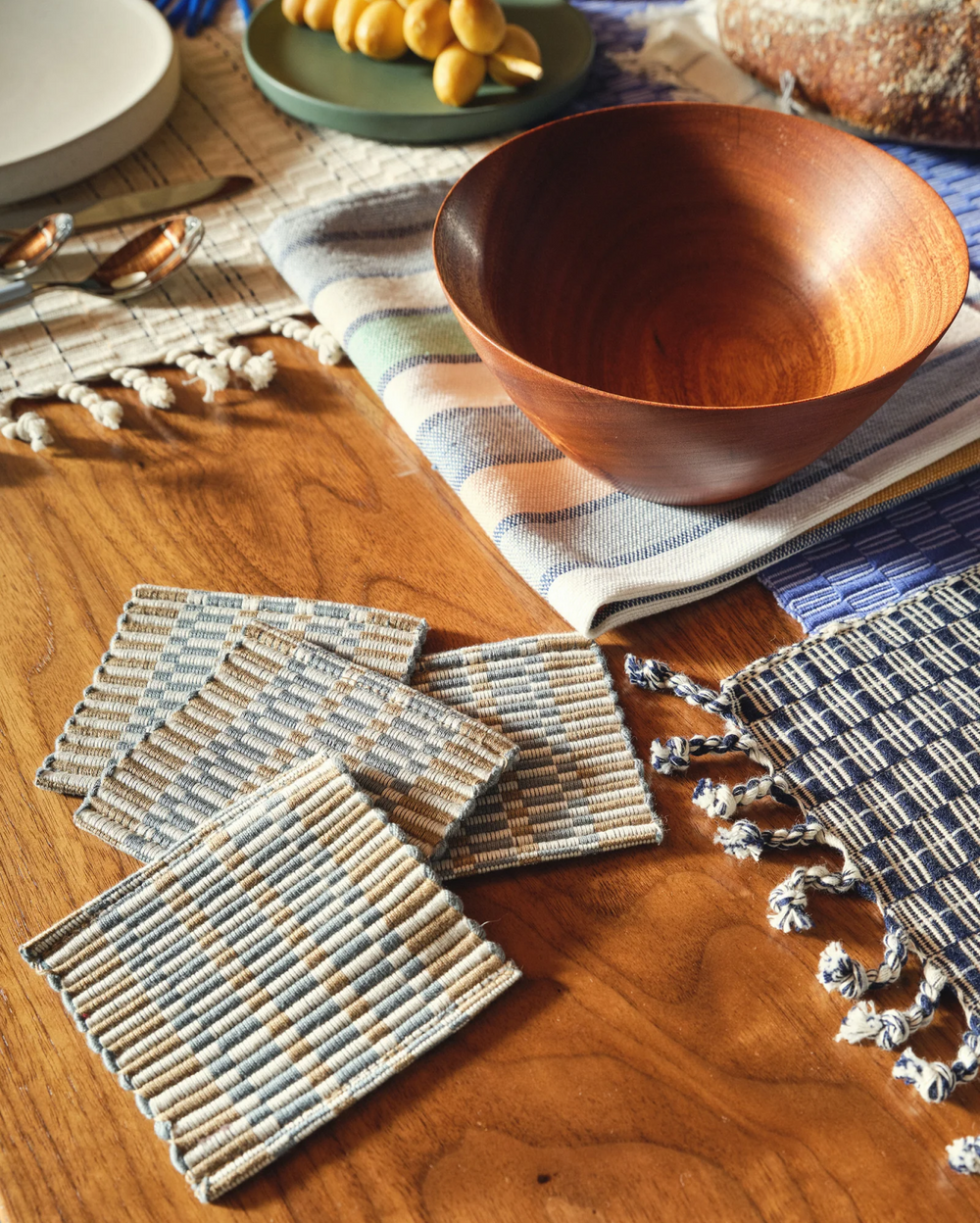 Our wood tables and furniture deserve care and attention. From sun splotches to water marks, prevent (or cover up) damage from moisture and the sun with handwoven linens to increase the longevity of your beloved pieces of wood furniture.