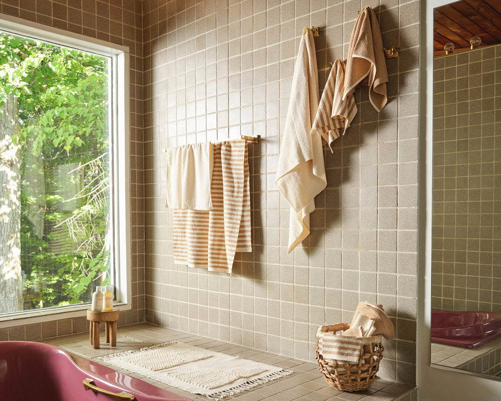 Emerge clear and calm from a bathroom designed for renewal. Elevate your bathing with handwoven textiles that feel as good as they look.