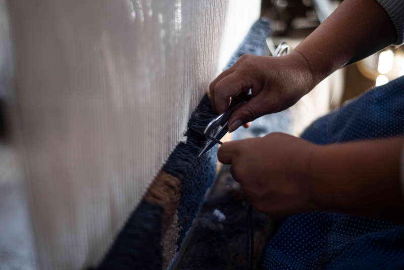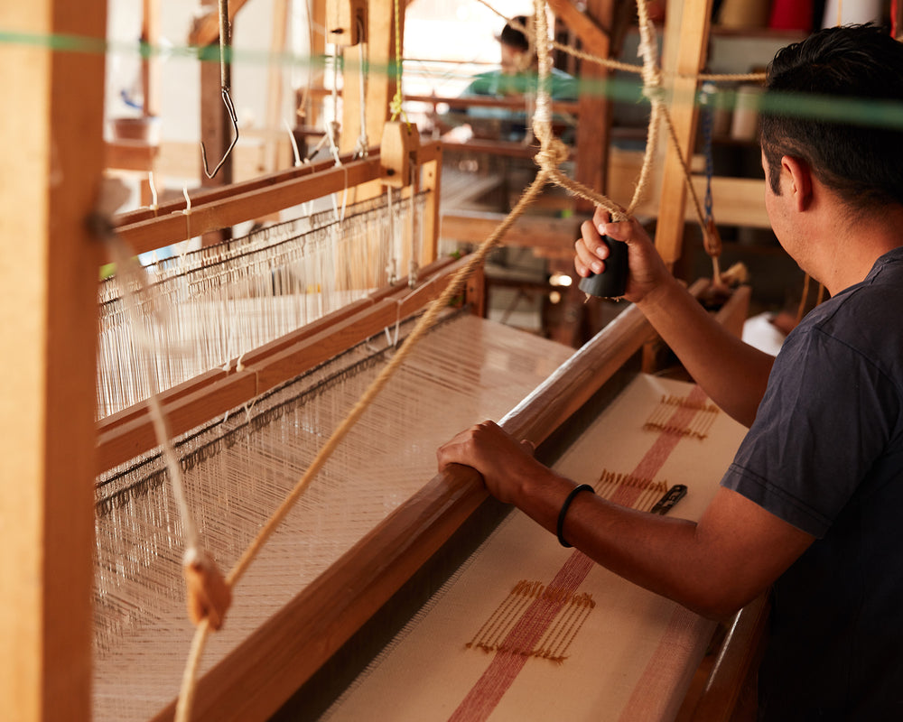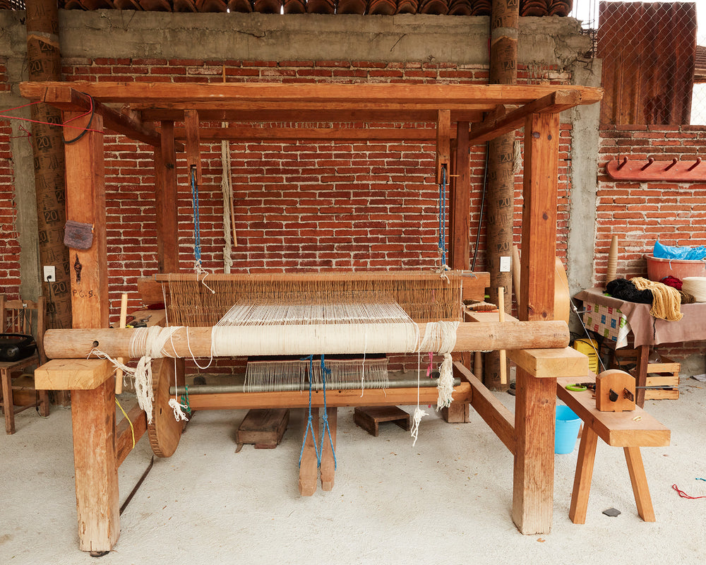 Mexico: We source cuttings from a local designer in San Cristobal de las Casas to use their handwoven cuttings in our recycled striped pillows.