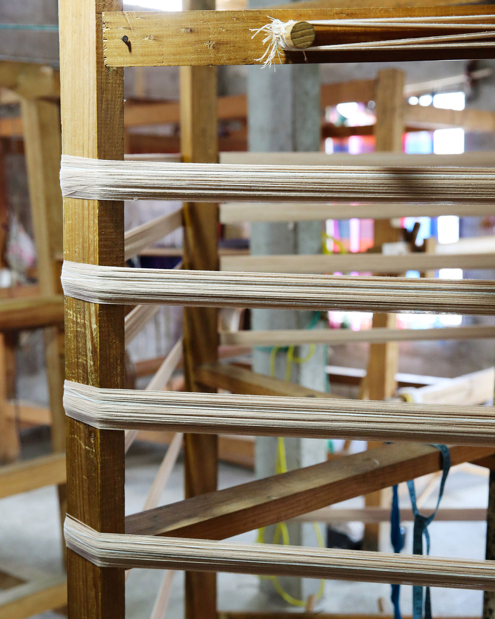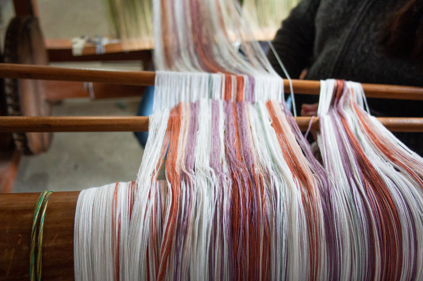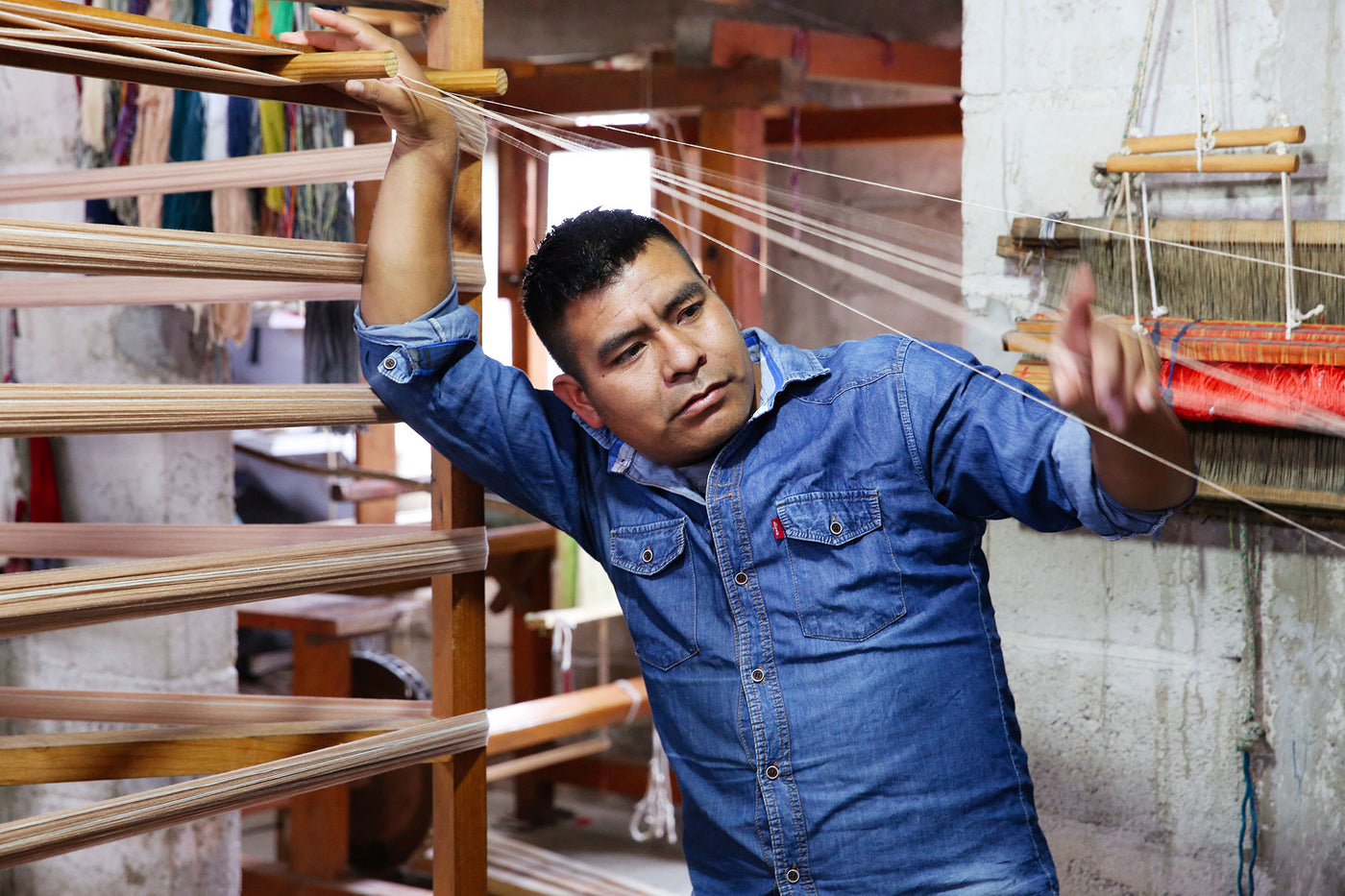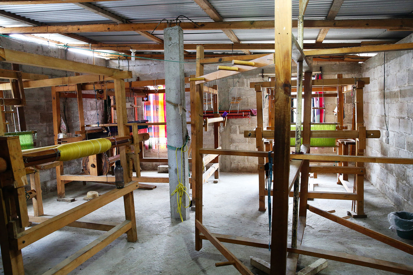 The weavers in Zinacantán are just a short walk from the town's central square. They have a large home workshop with six pedal looms and a small sewing workshop, run by a husband and wife team. They employ several weavers in the community and even have a small yarn store that allows community members to purchase thread more easily.
